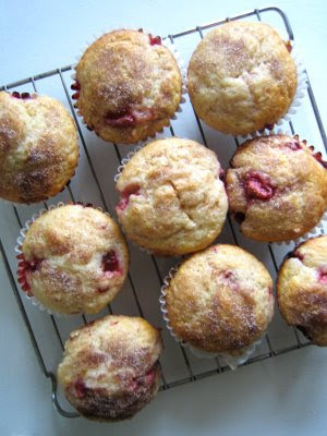 Today's recipe? Strawberry muffins topped with cinnamon sugar. I die, I die.